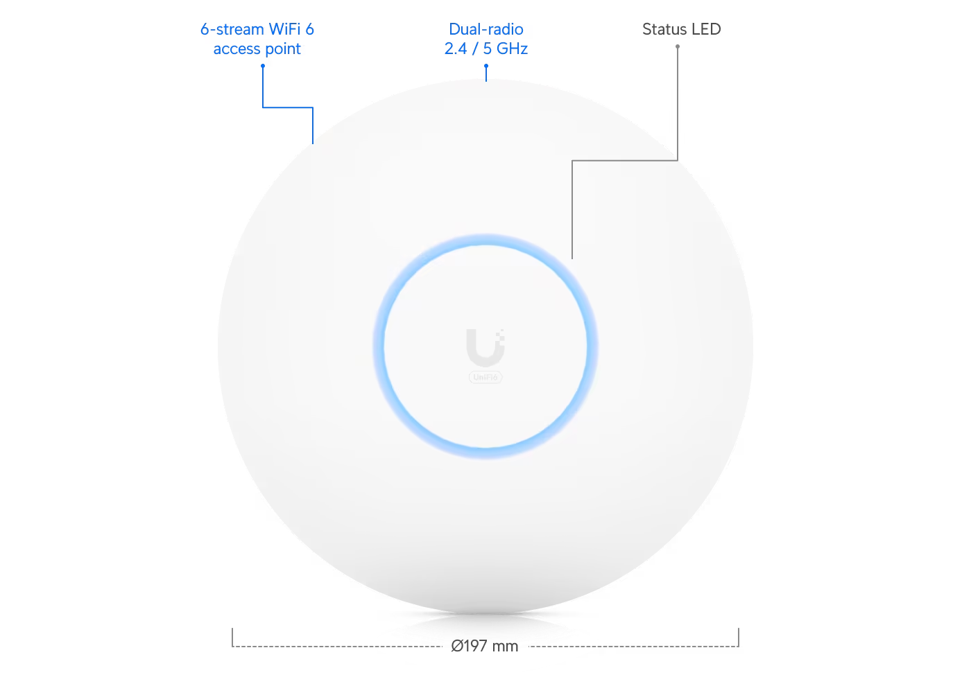 1. Access Point UniFi WiFi 6 Pro doble banda, para interior, hasta 5.3 Gbps, 5 GHz (MU-MIMO 4x4 y OFDMA) y 2.4 GHz (MIMO 2x2)